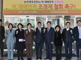 이날 건의문에는 최근 쌀 소비량보다 생산량이 더 많이 줄어든 가운데 정부가 모든 쌀 재배 농가의 논 면적을 의무적으로 감축하는‘벼 재배면적 조정제’를 시행하여 많은 농가가 어려움에 직면했다고 강조했다.