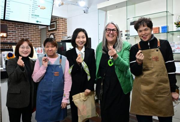 윈트럽 대사가 “바리스타 교육을 통해 이용자들의 자립을 돕고 당당한 지역사회 구성원으로 설 수 있도록 지원하는 복지관의 프로그램이야말로 실질적인 지원책”이라 언급하자, 최 의장은 “복지관을 이용하며 겪는 어려움이 없는지 현장을 살피고 필요한 부분이 있다면 관계기관과 함께 개선해 나가겠다”고 화답했다.