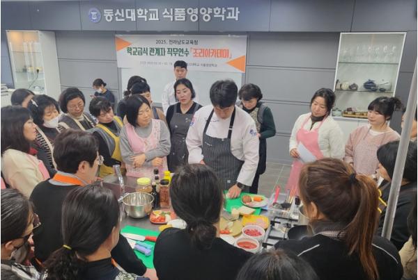 [중앙뉴스라인, 김민수기자] 전라남도교육청은 2월 10일부터 2월 14일까지 5일간 동신대학교 식품영양학과에서 영양교사·영양사, 조리사, 조리실무사 170명을 대상으로 ‘2025. 학교급식관계자 조리아카데미 연수’를 실시했다.