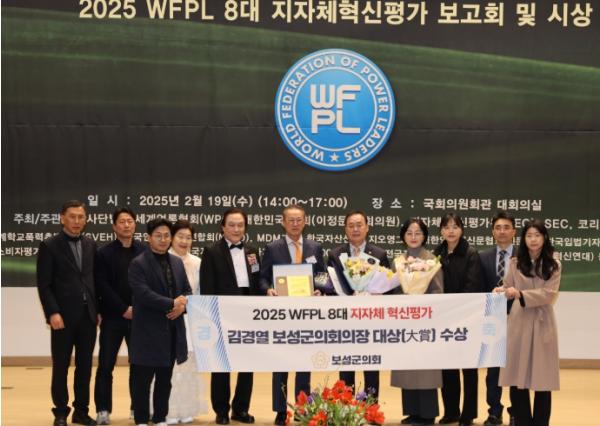 [중앙뉴스라인, 전은희기자] 보성군의회 김경열 의장이 지난 19일 국회의원회관에서‘2025 WFPL 8대 지자체 혁신평가 대상’을 수상했다.