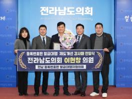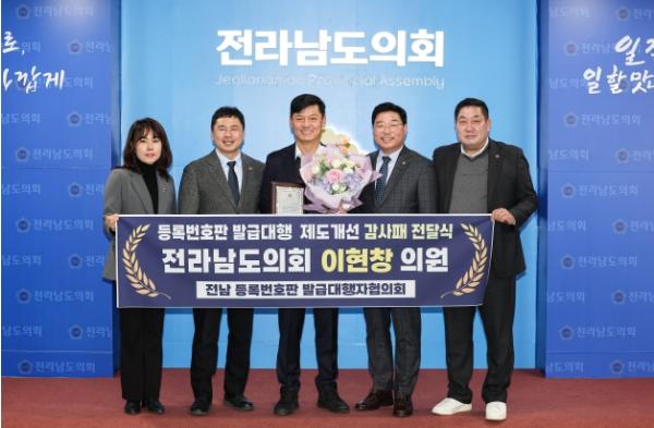 이현창 전남도의원, 등록번호판 발급대행자협의회로부터 감사패 수상
