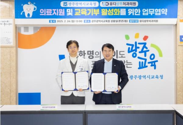 [중앙뉴스라인, 전은희기자] 광주시교육청과 유디상무치과의원이 사회적 배려 학생에 대한 의료지원을 위해 손을 맞잡았다.