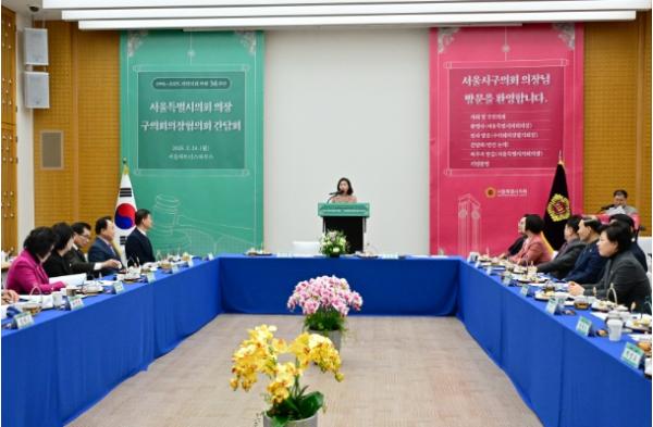 [중앙뉴스라인, 김민수기자] 최호정 의장은 24일 서울파트너스하우스에서 25개 자치구의회 의장들과 간담회를 갖고, 자치구와 서울의 균형발전을 위해 함께 협력하기로 했다. 시의회 의장과 구의회 의장 간 정책간담회는 1995년 민선 지방자치 시작 이래 처음이다.