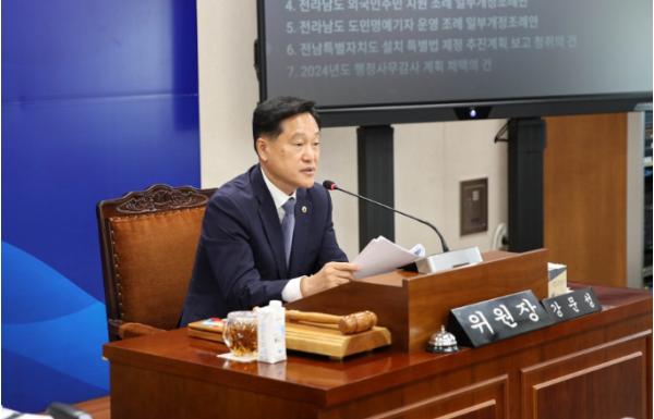 [중앙뉴스라인, 김민수기자] 전라남도의회 강문성 의원(기획행정위원장, 더불어민주당, 여수3)은 “전남 동부 이민·외국인 종합지원센터가 여수시에 설치되는 것을 환영하며, 지역 주민과 이민자・외국인 지원에 큰 도움이 될 것”이라고 밝혔다.