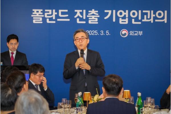 [중앙뉴스라인, 우제헌기자] 조태열 외교부 장관은 폴란드를 공식 방문한 계기에 3월 5일 바르샤바에서 현지 진출 우리 기업인들과 만찬 간담회를 가졌다. 이번 행사에는 13개의 폴란드 진출 한국 기업 및 7개 공공기관 대표 등이 참석했다.