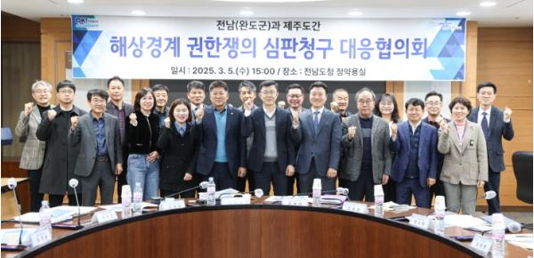[중앙뉴스라인, 김민수기자] 전라남도의회 신의준 의원(완도2, 더불어민주당)은 지난 3월 5일 전남도청에서 열린 완도군과 제주도간 해상경계 권한쟁의 심판청구 대응협의회에 참석하여 권한쟁의 심판소송 승리를 위한 강력한 대응을 촉구했다.