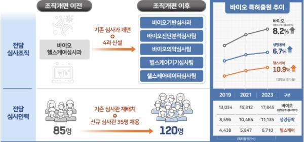 특허청은 이에 대응하여 올해 2월에 ❶민간의 바이오 분야 전문가 35명을 특허 심사관으로 채용하고, ❷바이오 분야를 우선심사 대상으로 지정한 바 있다. 이에 더해, ❸이번 전담 심사조직 신설로 국내 기업의 혁신 기술에 대해서 높은 부가가치를 갖는 안정적인 특허 확보 지원이 가능해졌다.