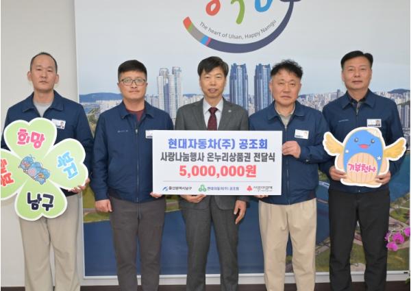 현대자동차(주) 공조회(회장 이채균)는 10일 남구청을 방문해 이웃돕기 후원금 500만 원을 울산사회복지공동모금회에 지정기탁 했다.