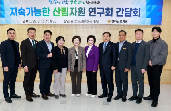 [중앙뉴스라인, 김민수기자] 전남도의회 ‘지속가능한 산림자원 연구회’(대표위원: 박현숙 의원, 이하 연구회)는 지난 3월 11일 도의회 중회의실에서 첫 번째 간담회를 개최하며 본격적인 활동을 시작했다.