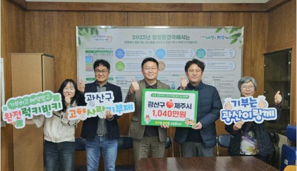 광산구와 제주시는 직원 104명의 자발적인 참여로 두 지자체 간 우호 증진과 기부 문화 조성을 위해 1,040만 원을 교차 기부했다.