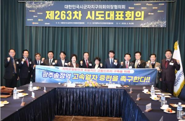 [중앙뉴스라인, 김효현기자] 광산구의회 김명수 의장(더불어민주당, 신흥동·우산동·월곡1·2동·운남동)이 대한민국시군자치구의회의장협의회를 통해 광주송정역 고속열차 증편과 호남선 인프라 확충을 강력히 촉구하고 나섰다.