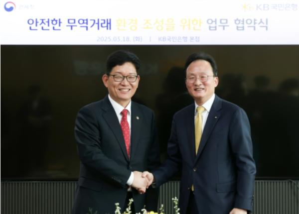 [중앙뉴스라인, 우제헌기자] 관세청은 3월 18일 여의도 국민은행 본사에서 고광효 관세청장, 이환주 KB국민은행장 및 양 기관 관계자들이 참석한 가운데 KB국민은행과 '민-관 데이터 기반 협력 업무협약(MOU)'을 체결했다.