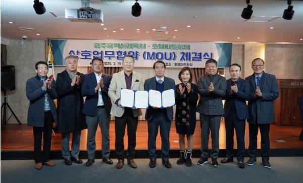 시체육회는 19일 오전 11시 호텔 아트하임에서 전갑수 체육회장, 전용준 아트하임‧광남일보 회장, 김재희 아트하임 대표이사, 골프 등 종목단체 회장 등 관계자 25명이 참석한 가운데 ‘광주시체육회-호텔 아트하임 업무협약 체결식’을 가졌다고 밝혔다.