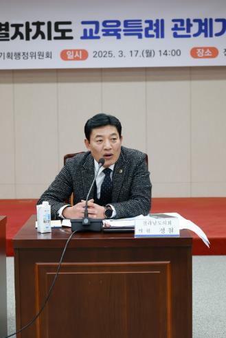 [중앙뉴스라인, 김민수기자] 전라남도의회 교육위원회 정철 의원(더불어민주당·장성1)은 지난 3월 17일 전라남도의회 초의실에서 열린 ‘전라남특별자치도 교육특례 관계기관 간담회’에서 전남 교육환경 개선과 교육자치권 강화를 위한 논의를 진행했다.
