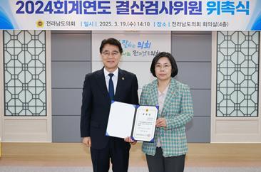 전남도의회는 2024회계연도 결산 검사를 위해 박경미 도의원을 포함한 도의원 3명과 전남도 및 도교육청에서 재무 및 회계 분야 업무를 담당한 전직 공무원 4명, 회계 분야에 전문성을 갖춘 공인회계사 3명 등 총 10명을 결산 검사 위원으로 선임했다.