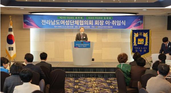 [중앙뉴스라인, 김민수기자] 전라남도의회 이광일 부의장(더불어민주당·여수1)은 지난 3월 21일(금) 목포 상그리아호텔에서 열린 '전라남도여성단체협의회장 이·취임식'에 참석해 축사를 전했다.