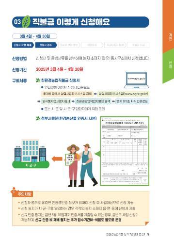 올해는 예외로 2025년 신규 인증농가도 기간 내 인증서를 제출하면 직불금을 지급한다.