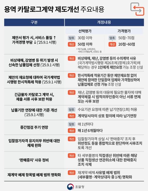 이번 제도개선은 서비스 품질 향상, 이용자 편의성 증대, 조달기업 부담 완화 중심으로 이뤄진다.