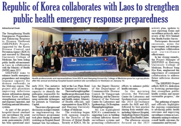 [중앙뉴스라인, 신기철기자] 질병관리청은 4월 2일~4월 3일 이틀 간 라오스 대상 국제개발협력(ODA) 사업의 일환으로 라오스 보건부 인력을 초청하여 보건위기 대응 역량강화 프로그램을 실시한다.