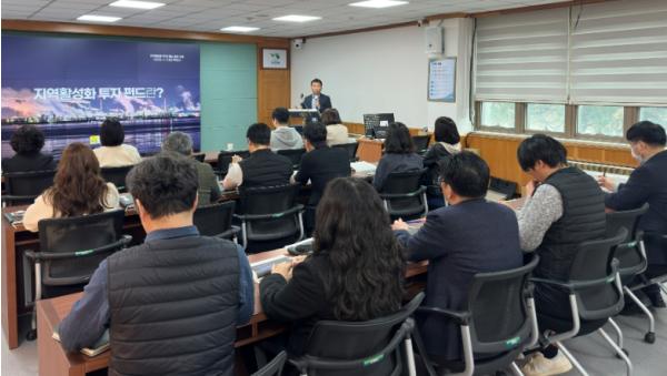 또한 전남도 투자유치과 펀드전담팀에서 ▲지역활성화 투자 펀드 제도 ▲펀드 선정 및 검토 사업 사례 ▲전남도 추진계획 등을 안내하고, 시군별 펀드 사업을 발굴하고 논의하는 자리로 진행된다.