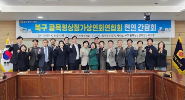 이번 간담회에는 신수정 의장, 박필순 산업건설위원장, 조석호 의원, 채은지 의원, 북구 골목형상점가 상인회연합회 양충호 회장과 상인회장, 관계 공무원 등 30여명이 참석했다.