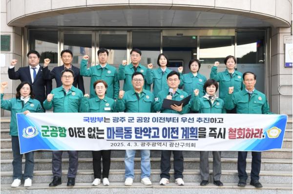 [중앙뉴스라인, 김효현기자] 광산구의회가 3일 ‘광주 군 공항 이전 없는 마륵동 탄약고 이전 중단 촉구 성명서’를 발표했다.