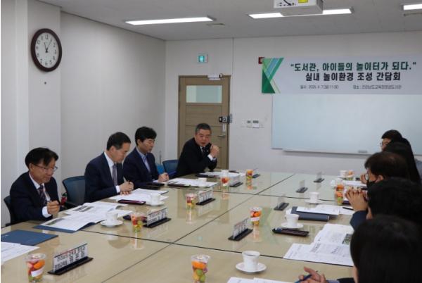 이날 간담회에는 전라남도교육청 행정과 강성근 과장 등 전라남도교육청 교육 관계자들이 참석해 도서관 내 실내 놀이공간 설치 필요성과 운영 방식, 도서관을 교육과 놀이의 복합공간으로 만드는 방안 등에 대한 다양한 의견을 나눴다.