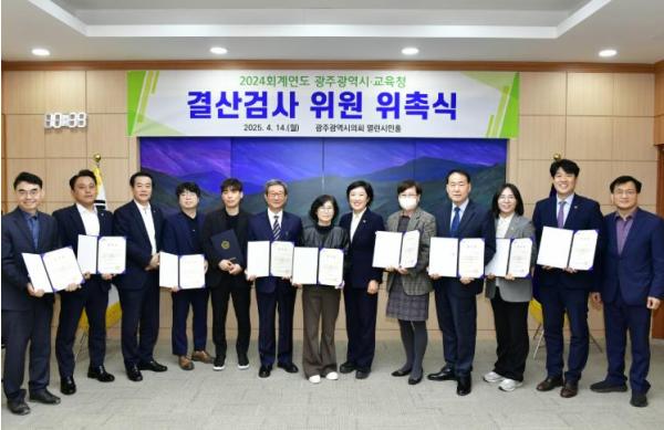 [중앙뉴스라인, 김효현기자] 광주광역시의회는 14일 시의회 열린시민홀에서 광주시와 광주시 교육청을 대상으로 하는 2024회계연도 결산검사위원 위촉식을 개최했다.