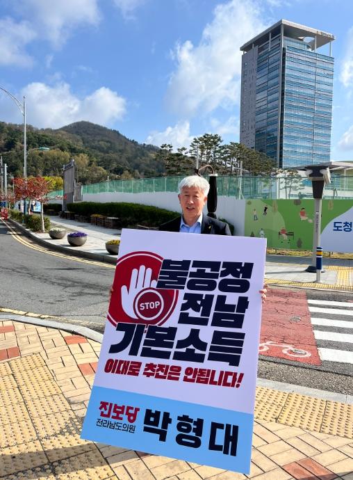 전라남도의회 박형대 도의원, “불공정 전남 기본소득 이대로 추진 안돼” 1인 시위