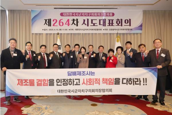 광주광역시자치구의회의장협의회장인 김명수 의장이 발의한 ‘담배제조물의 결함 인정 및 사회적 책임 이행 촉구 건의안’이 15일 홀리데이인 인천 송도 호텔에서 열린 제264차 대한민국시군자치구의회의장협의회 시도대표회의에서 채택됐다.