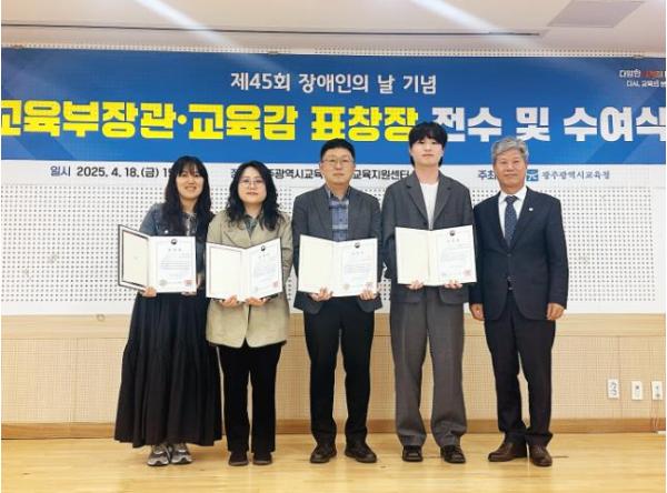 이날 광주선명학교 이제나 교사, 광주선우학교 이순영 교사, 은혜학교 박석일 교사 등은 교원 부분, 시교육청 박규성 주무관은 일반직 공무원 부분 등 4명이 교육부장관 표창을 받았다.