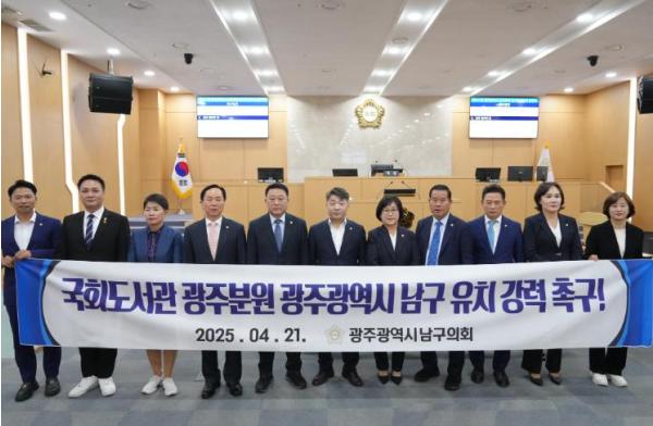 [중앙뉴스라인, 김효현기자] 광주광역시 남구의회는 21일 성명서를 통해 국회도서관의 호남권 분원 설치를 앞두고, 광주 남구에 국회도서관 분원 유치를 촉구하고 나섰다.