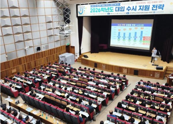 광주시교육청은 지난 21일 광주교육연구정보원 대강당에서 고3 담임교사를 대상으로 ‘2026 대입 수시 지원전략 연수’를 진행했다.