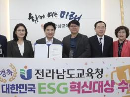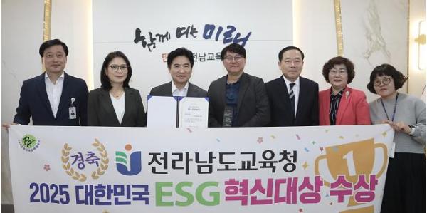 전남교육청은 ESG(환경 · 사회 · 거버넌스) 가치를 교육행정과 학교 교육과정 전반에 체계적으로 내재화해 온 노력을 높이 평가받았다.