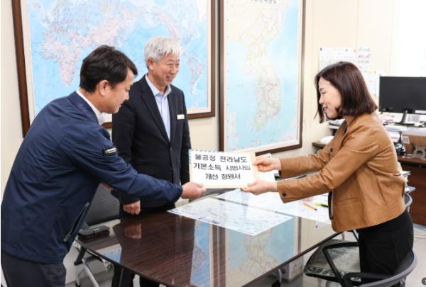 [중앙뉴스라인, 김민수기자] 전라남도의회 박형대 의원(진보당, 장흥1)은 4월 24일 정학철 화순군 전 농민회장과 함께 ‘불공정 전라남도 기본소득 시범사업 개선’ 청원서를 전라남도의회에 제출했다.