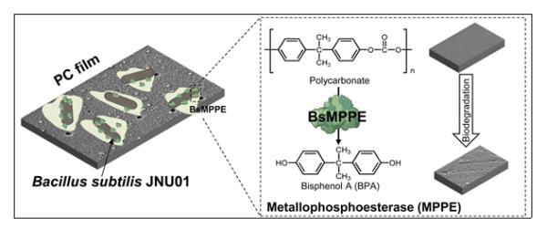 연구팀은 전사체 분석을 통해 이 미생물에서 발현되는 신규 효소 MPPE를 발굴하고, 해당 효소가 폴리카보네이트의 탄산에스터 결합을 효율적으로 절단하여 단량체인 비스페놀 A를 생성함을 규명했다. 또한, 다양한 물리·화학적 분석을 통해 PC의 구조 변화와 기계적 특성 저하를 확인함으로써, 효소에 의한 분해 메커니즘을 정량적으로 입증했다.