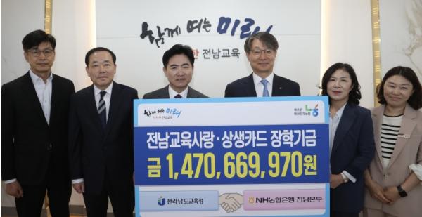 [중앙뉴스라인, 김민수기자] 전라남도교육청은 29일 NH농협은행 전남본부(본부장 류종필)로부터 14억 7,066만 원의 장학기금을 기탁받았다.