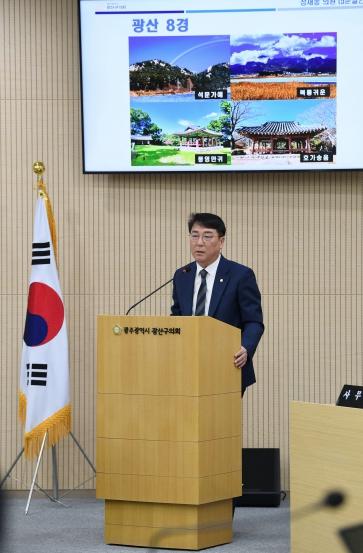 정재봉 의원은 30일 열린 제296회 광산구의회 임시회 제1차 본회의에서 5분 자유발언을 통해 “1989년에 지정된 광산8경은 시간이 흐르면서 자연·문화적 의미와 가치가 퇴색되고 시민과의 연결고리가 약해졌다”고 밝혔다.