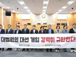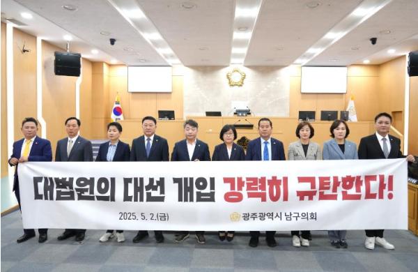 [중앙뉴스라인, 김효현기자] 광주 남구의회는 2일 "대법원의 대선 개입 강력 규탄" 성명서를 발표하며, 대법원의 파기환송 결정에 대한 강력한 반발 입장을 표명했다.