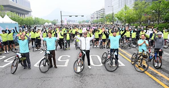 올해로 17번째 개최된 ‘서울자전거대행진’은 자전거 이용을 활성화하고 안전한 라이딩 문화 확산을 위해 매년 열려왔다. 이날 대행진은 광화문광장을 출발, 강변북로를 따라 월드컵공원까지 21km 코스를 달리는 비경쟁 퍼레이드로 진행됐다.