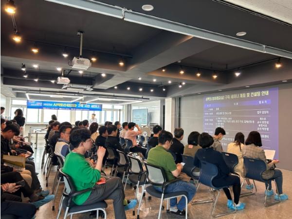 세미나는 사업 대상 학교의 담당 교사 및 업무 관계자들과 함께 미래교육환경 조성을 위한 논의와 관련 정보를 공유하기 위해 마련됐으며, ▲AI팩토리 구축 학교 사례공유 ▲실무자 질의응답 ▲공간 설계·공사 진행·준공 검사 등의 절차 안내 등 순으로 진행됐다.