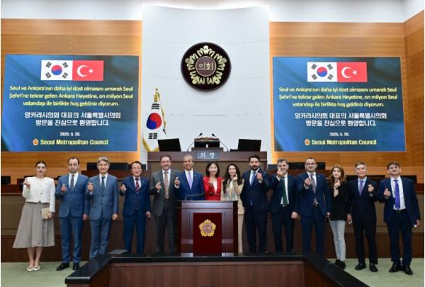 20일 서울시의회를 공식 방문한 앙카라시의회 대표단은 최호정 의장 등 의장단을 면담하고 환영오찬 행사에 참석했다. 이어 주한튀르키예대사관을 방문해 무랏 타므르 대사 등과 면담했다.