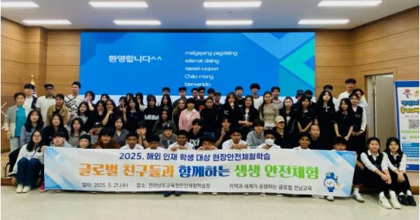 김대중 교육감은 “이번 현장안전체험학습은 낯선 환경 속에서 학업을 이어가고 있는 외국인 학생들에게 실질적이고 체계적인 안전교육의 기회를 제공하는 매우 뜻깊은 프로그램”이라며 “학생들이 다양한 위험 상황에서 자신을 지킬 수 있는 역량을 키우는 계기가 되길 바란다”고 전했다.