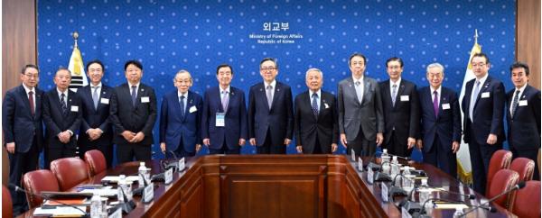 [중앙뉴스라인, 신기철기자] 조태열 외교부 장관은 5월 26일 오후 외교부 청사에서 「제57회 한일경제인회의」(5.27.-28.) 참석차 방한한 아소 유타카 일한경제협회 부회장 등 일한경제협회 대표단을 접견하고, 한일 경제협력 관련 의견을 교환했다.