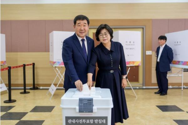 사전투표하는 이재영 증평군수 부부
