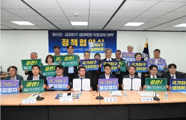 국가하구생태복원전국회의 상임의장인 이 의원은 지난 28일 국회의원회관에서 더불어민주당 중앙선거대책위원회 정책본부, 기후위기대응위원회와 함께 정책협약식을 열고, ‘영산강ㆍ금강하구 생태복원’ 등 주요 현안을 차기 정부의 대선 국정과제로 채택하기 위한 공동 협력체계를 구축했다.