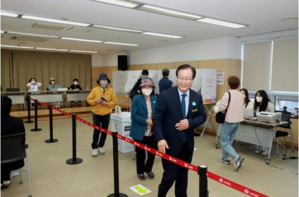 유희태 완주군수 사전투표 “투표는 민주주의 기본”