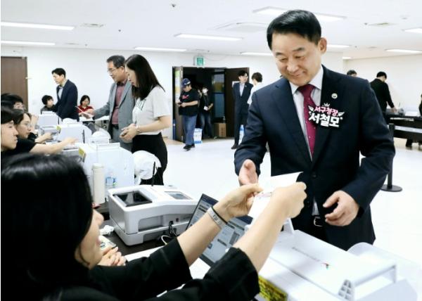 사전투표하는 서철모 대전 서구청장