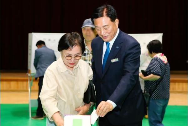 김한종 장성군수 부부, 29일 오전 사전투표