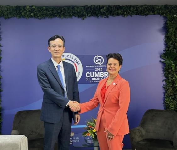 카리브국가연합(ACS) 제10차 정상회의 및 제30차 각료회의 참석차 콜롬비아 카르타헤나를 방문한 김진해 카리브공동체(CARICOM) 정부대표는 5월 28일 노에미 에스피노자 마드리드(Noemí Espinoza Madrid) ACS 사무총장과 면담하고, ▵해양 협력 ▵기후변화 대응 ▵인적교류 등 분야에서 한-ACS 협력 강화 방안을 논의했다.